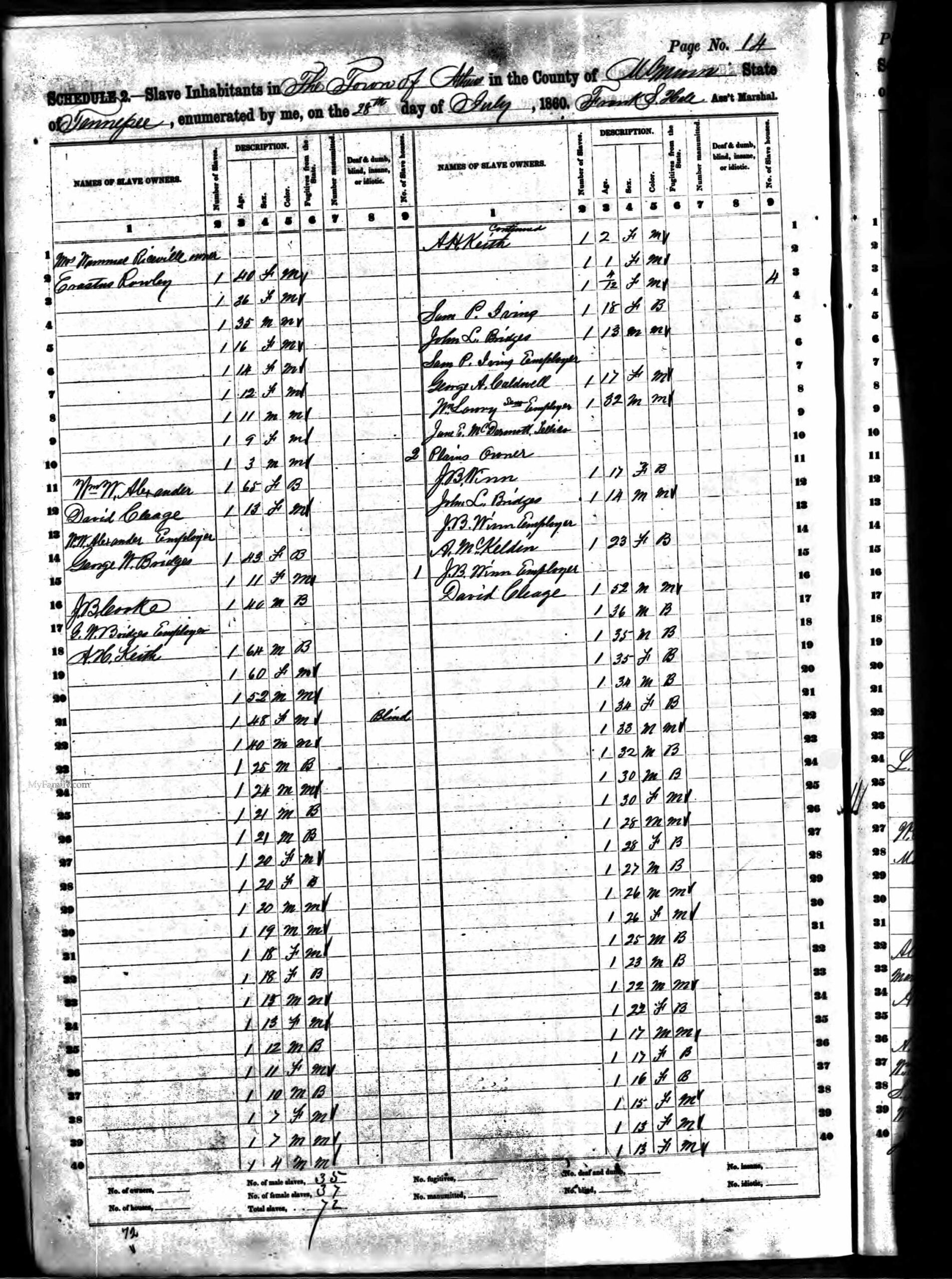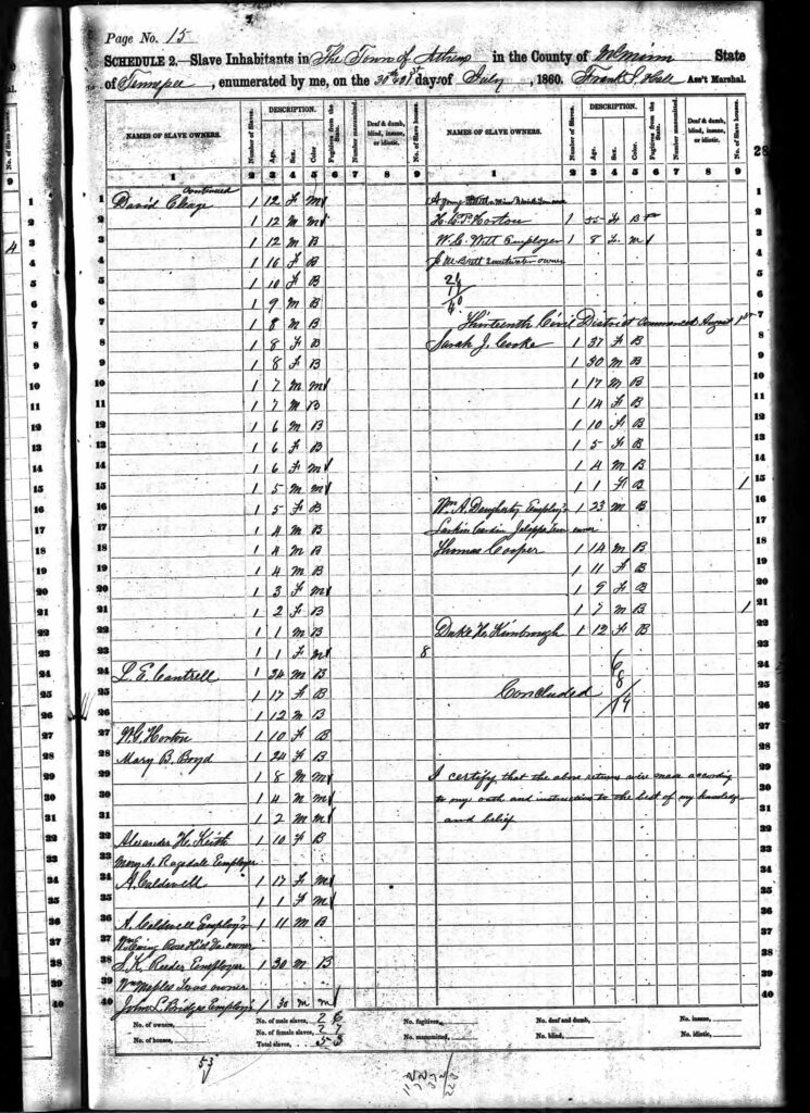 The 1860 Slave Census for David Cleage