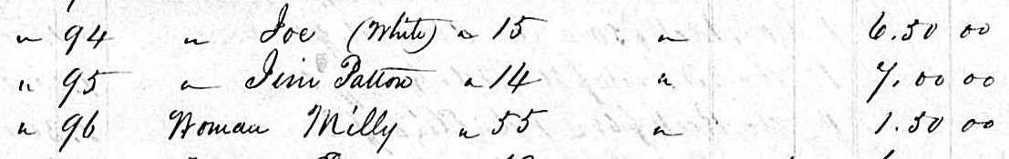 Joe & Milly 55 1853 August 17, 2016Full resolution (1107 × 175) ← Previous Next → My 2 X great grandfather Joe Turner and Milly from the 1853 probate file of Wiley Turner.